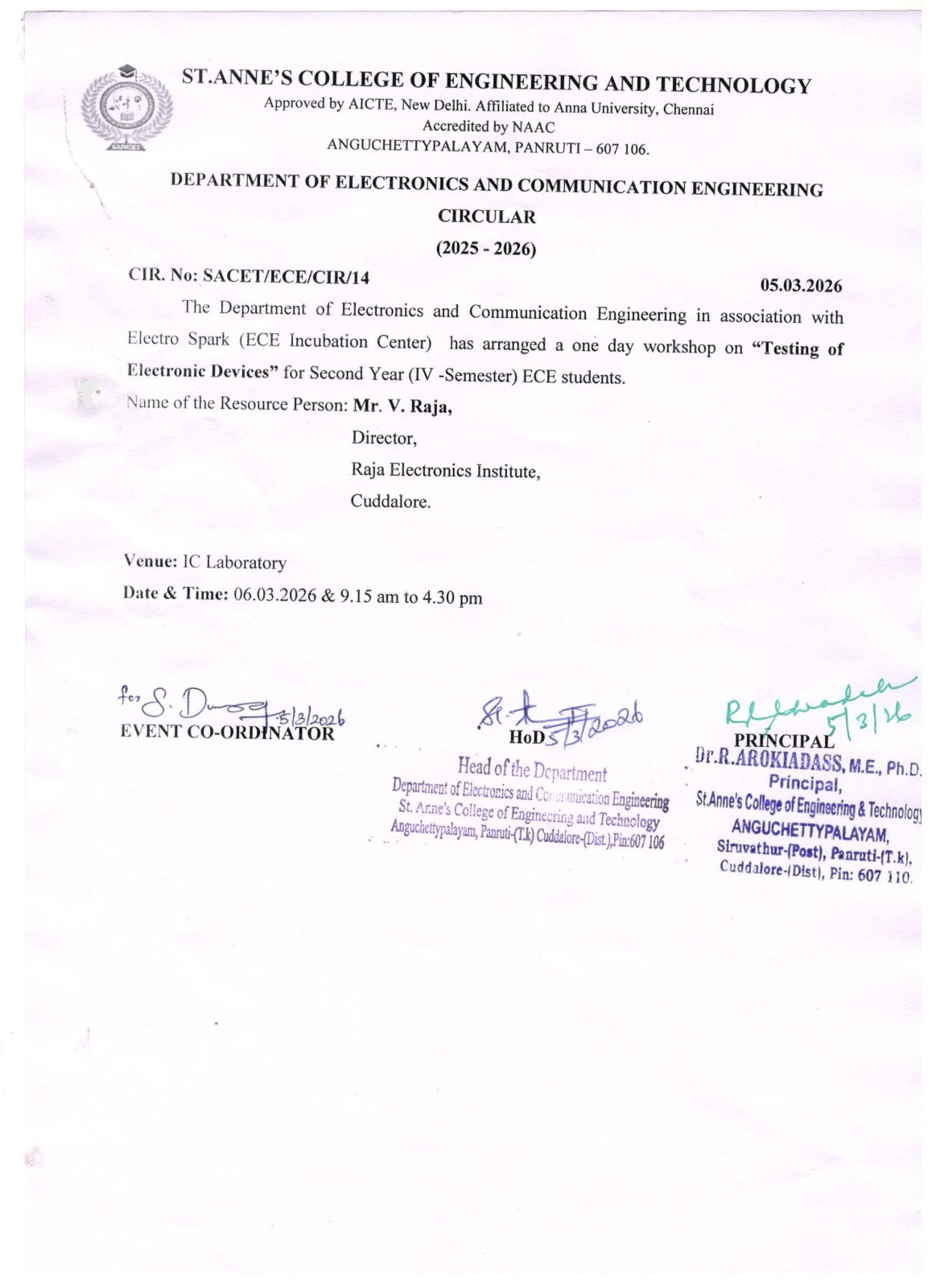 job-oriented training programmes, in the name and style of St. Anne's College of Engineering and